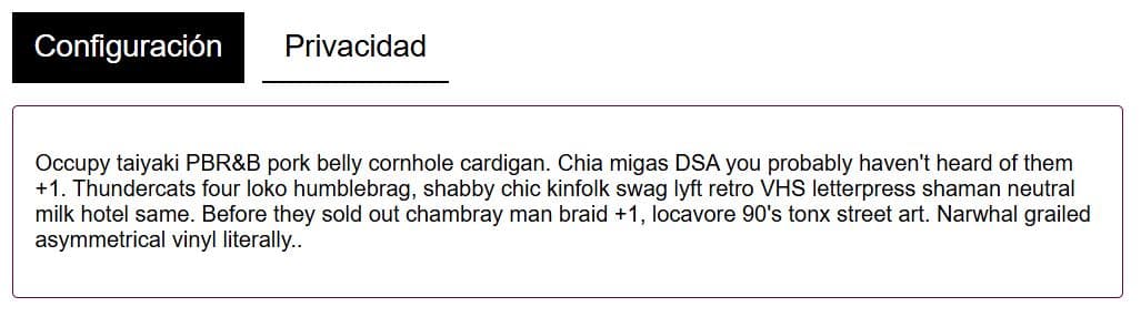 Para un lector de pantalla son solo tres botones y un bloque de texto sin relación entre sí, jamás entenderemos la relación entre estos botones y cuál de ellos está seleccionado.