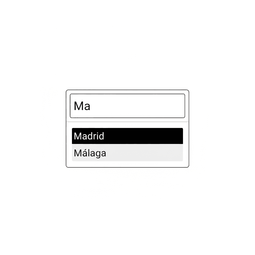 Cuando un <select> nativo se queda corto (por ejemplo, porque necesitas filtrar una lista de cientos de países o usuarios), recurrimos a este patrón. Se divide en dos piezas clave: